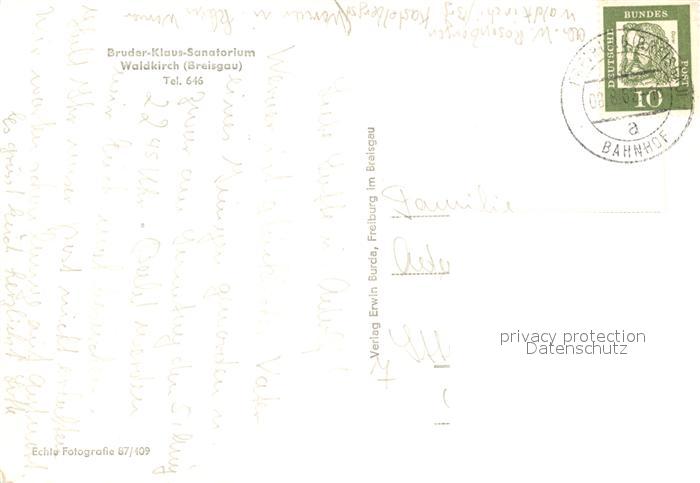73135614 alte Postkarte Waldkirch Breisgau Bruder Klaus Sanatorium postalisch gelaufen Erhaltung siehe scans [FriedD77] KatCode: 11110008316056