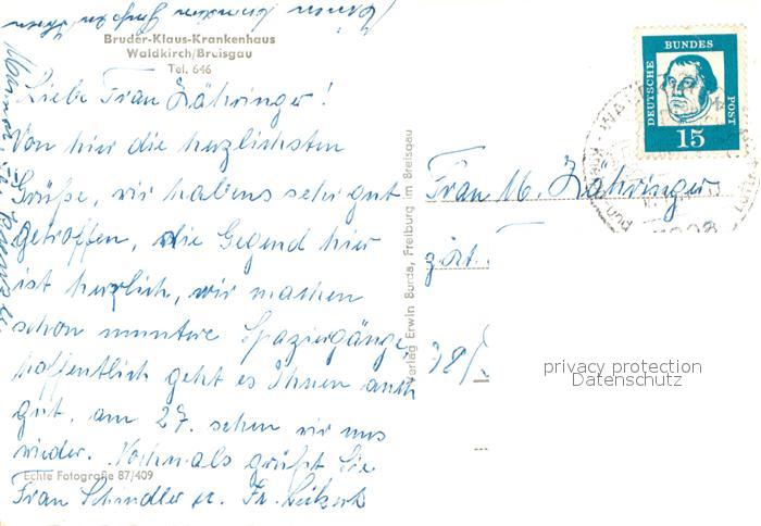 72941970 alte Postkarte Waldkirch Breisgau Bruder Klaus Sanatorium postalisch gelaufen Erhaltung siehe scans [FriedD77] KatCode: 11110008316056
