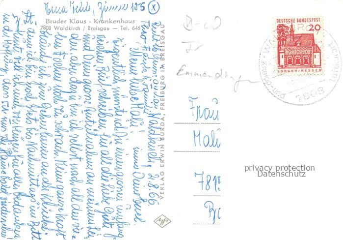 74143710 alte Postkarte Waldkirch Breisgau Elztal Baden BW Bruder Klaus Sanatorium postalisch gelaufen Erhaltung siehe scans [SanaeD93] KatCode: 11110008316056