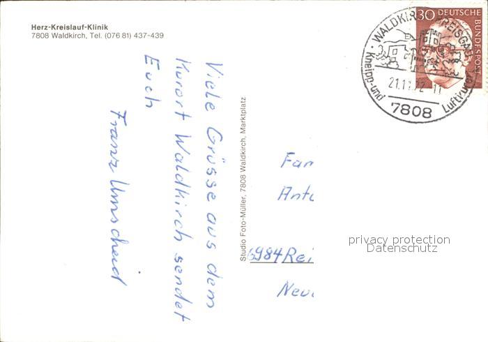 72041291 alte Postkarte Waldkirch Breisgau Herz Kreislauf Klinik postalisch gelaufen Erhaltung siehe scans KatCode: 11110008316056