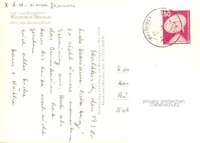 73166081 alte Postkarte Waldkirch Breisgau Herz Kreislaufklinik postalisch gelaufen Erhaltung siehe scans [KathaD81] KatCode: 11110008316056