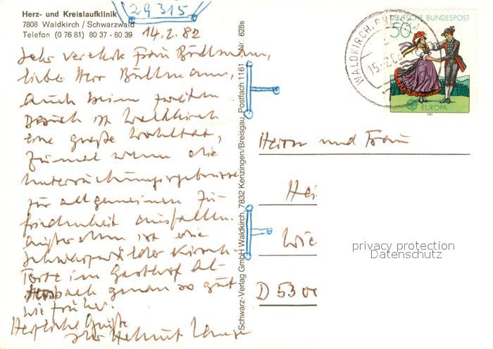73650455 alte Postkarte Waldkirch Breisgau Herz- und Kreislaufklinik Schwarzwald postalisch gelaufen Erhaltung siehe scans [FriedD77] KatCode: 11110008316056