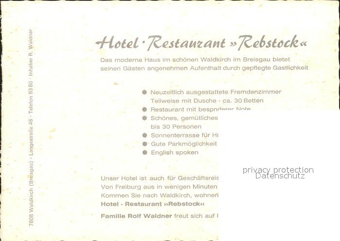71830392 Waldkirch Breisgau Hotel-Restaurant Rebstock postalisch nicht gelaufen Werbekarte (keine Postkarte) Erhaltung siehe scans KatCode: 11110008316056