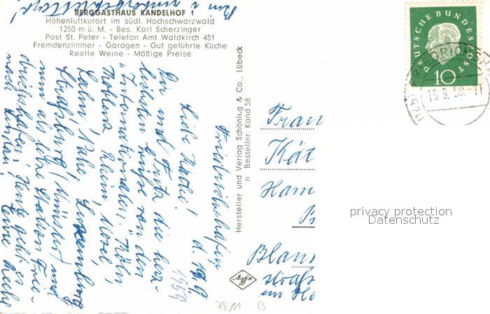 72794725 alte Postkarte Waldkirch Breisgau Kandelhof St.Peter St. Maergen Glottertal Aussichtskanzel postalisch gelaufen Erhaltung siehe scans [LiesaD40] KatCode: 11110008316056