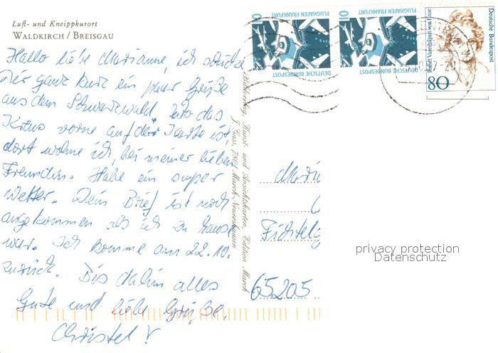 73265823 alte Postkarte Waldkirch Breisgau Ortsansicht mit Kirche Luftkurort im Schwarzwald postalisch gelaufen Erhaltung siehe scans [FriedD77] KatCode: 11110008316056