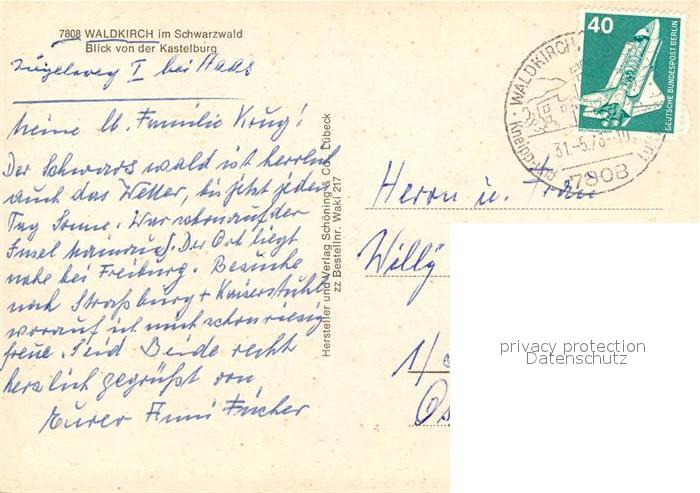 73265822 alte Postkarte Waldkirch Breisgau Panorama Blick von der Kastelburg Schwarzwald postalisch gelaufen Erhaltung siehe scans [FriedD77] KatCode: 11110008316056