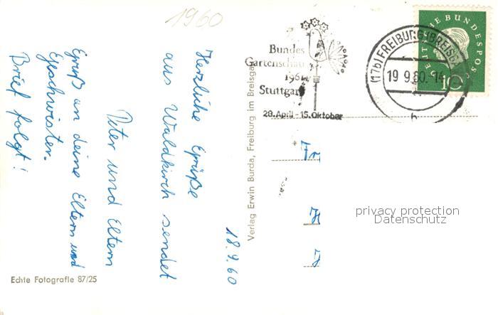 73369156 alte Postkarte Waldkirch Breisgau Rathaus Stadion Stadtpfarrkirche Kandel Hotel Kandel Gipfel postalisch gelaufen Erhaltung siehe scans [KathaD81] KatCode: 11110008316056