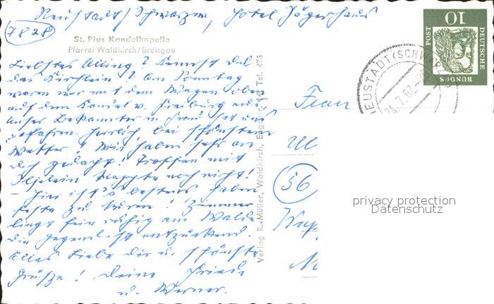 72225768 alte Postkarte Waldkirch Breisgau St Pius Kandelkapelle postalisch gelaufen Erhaltung siehe scans KatCode: 11110008316056