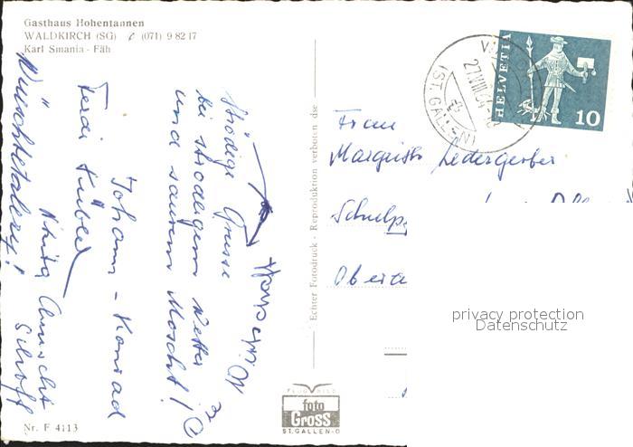 11629773 alte Postkarte Waldkirch SG Fliegeraufnahme Gasthaus Hohentannen Blick zum Bodensee postalisch gelaufen Erhaltung siehe scans KatCode: 11470190575758