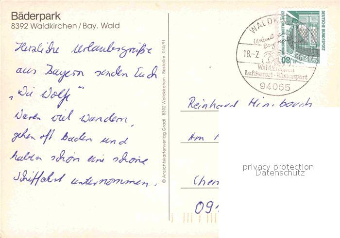 72617125 alte Postkarte Waldkirchen Niederbayern Baederpark Freibad Wasserrutsche postalisch gelaufen Erhaltung siehe scans [WerneD78] KatCode: 11110009272151