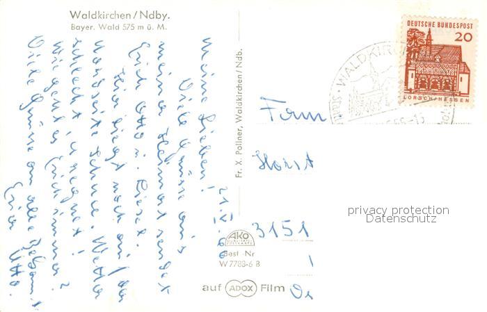 73670946 alte Postkarte Waldkirchen Niederbayern Felsformationen Saussbachklamm Marktplatz Brunnenbuberl Mariensaeule Gesamtansicht postalisch gelaufen Erhaltung siehe scans [FriedD77] KatCode: 11110009272151