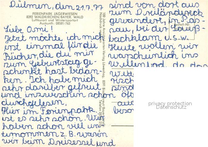 73748016 Waldkirchen Niederbayern Ferienpark Jaegerwiesen Gastraeume Ortsmotiv postalisch nicht gelaufen Erhaltung siehe scans [WerneD78] KatCode: 11110009272151