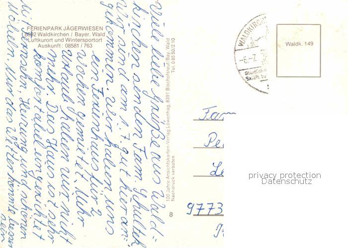 72841567 alte Postkarte Waldkirchen Niederbayern Ferienpark Jaegerwiesen postalisch gelaufen Erhaltung siehe scans [LiesaD40] KatCode: 11110009272151