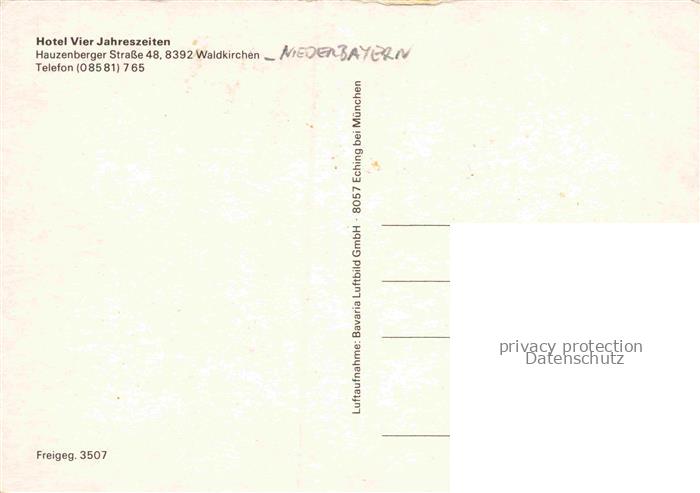 74157635 Waldkirchen Niederbayern Freyung-Grafenau Bayern Hotel-Vier-Jahreszeiten Hauzenberger-Strasse Tennisplaetze Schwimmbad Dorf Felder Luftbild postalisch nicht gelaufen Fliegeraufnahme Erhaltung siehe scans [Karloger] KatCode: 11110009272151