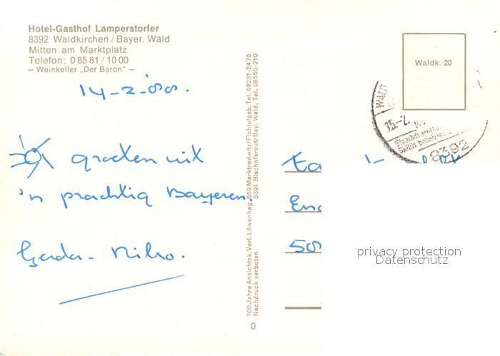 73716918 alte Postkarte Waldkirchen Niederbayern Hotel Gasthof Lamperstorder Gastraum Fremdenzimmer Marktplatz Maibaum postalisch gelaufen Erhaltung siehe scans [FriedD77] KatCode: 11110009272151
