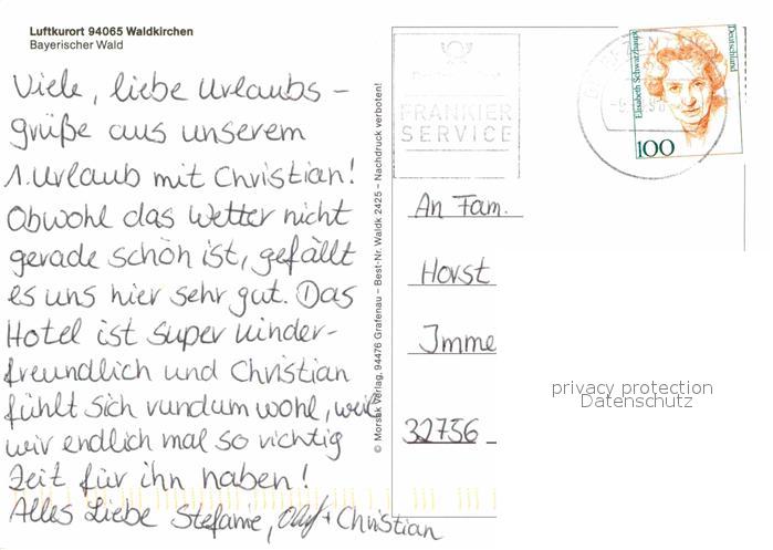 72837164 alte Postkarte Waldkirchen Niederbayern Marktplatz Figuren Luftkurort im Bayerischen Wald postalisch gelaufen Erhaltung siehe scans [FriedD77] KatCode: 11110009272151