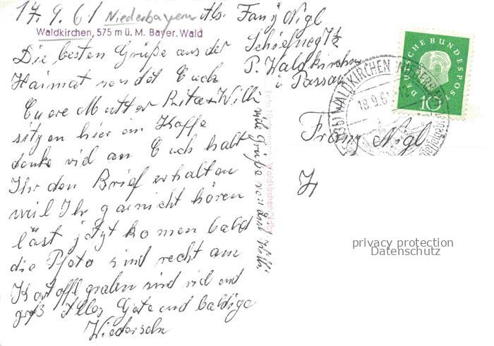 34146241 alte Postkarte Waldkirchen Niederbayern Stadtzentrum mit Blick zur Kirche postalisch gelaufen Erhaltung siehe scans [FriedD77] KatCode: 11110009272151