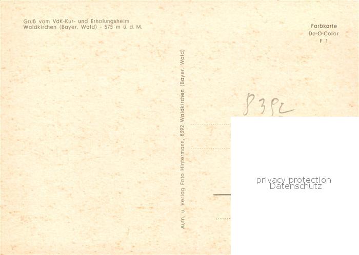 73027824 Waldkirchen Niederbayern VDK Kur Erholungsheim postalisch nicht gelaufen Erhaltung siehe scans [KathaD81] KatCode: 11110009272151