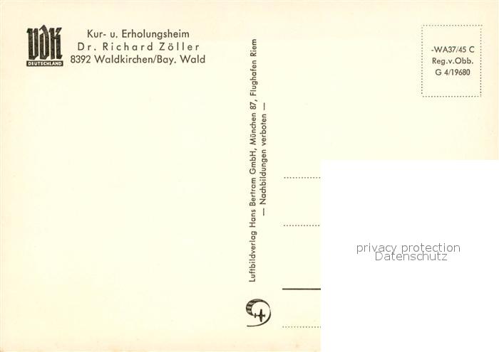 73743240 Waldkirchen Niederbayern VdK Kur und Erholungsheim Fliegeraufnahme postalisch nicht gelaufen Erhaltung siehe scans [FriedD77] KatCode: 11110009272151