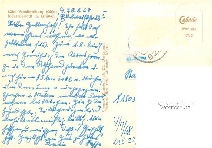 73175121 alte Postkarte Waldkraiburg Industriestadt im Gruenen Fliegeraufnahme postalisch gelaufen Erhaltung siehe scans [FriedD77] KatCode: 11110009183148