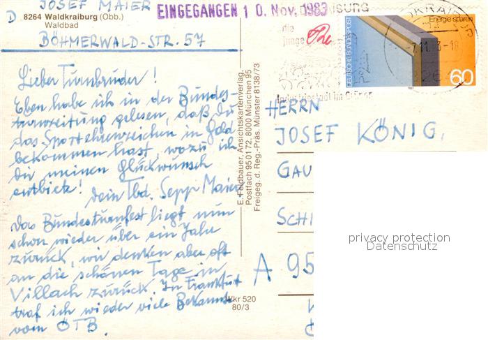 72962921 alte Postkarte Waldkraiburg Waldbad Fliegeraufnahme postalisch gelaufen Erhaltung siehe scans [WerneD78] KatCode: 11110009183148
