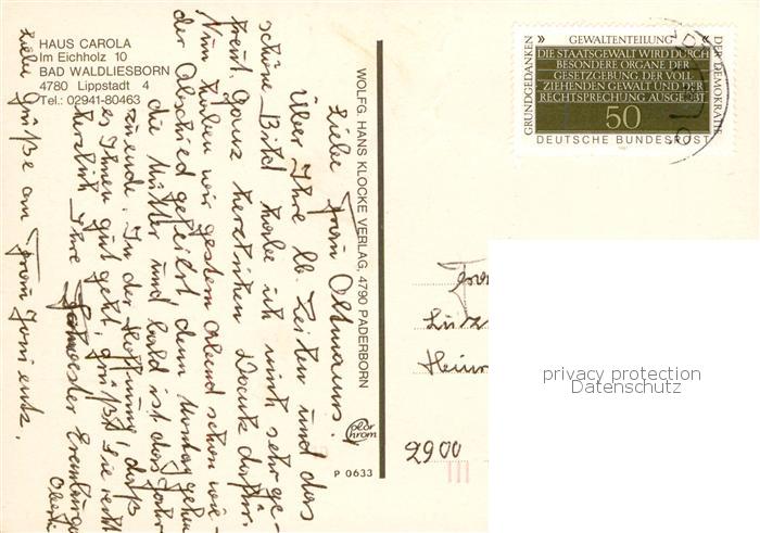 73858921 alte Postkarte Waldliesborn Bad Haus Carola Gastraeume Hauskapelle postalisch gelaufen Erhaltung siehe scans [WerneD78] KatCode: 11110005974028