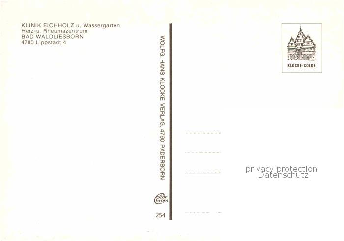 72839906 Waldliesborn Bad Klinik Eichholz mit Wassergarten postalisch nicht gelaufen Erhaltung siehe scans [LiesaD40] KatCode: 11110005974028