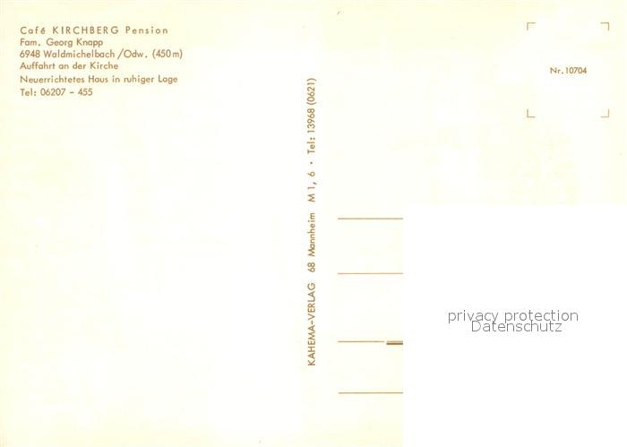 73726610 Waldmichelbach Cafe Kirchberg Pension postalisch nicht gelaufen Erhaltung siehe scans [LiesaD40] KatCode: 11110006431021