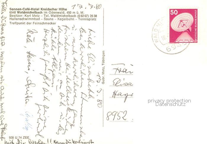 73109085 alte Postkarte Waldmichelbach Cafe Kreidacher Hoehe postalisch gelaufen Erhaltung siehe scans [NatalD47] KatCode: 11110006431021