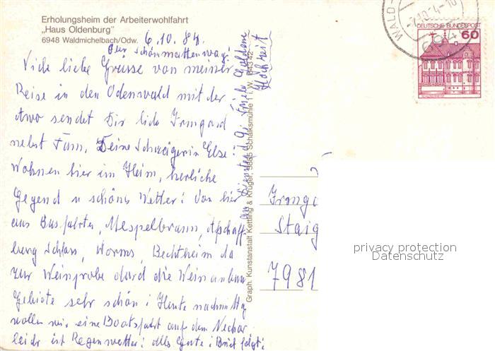72796923 alte Postkarte Waldmichelbach Erholungsheim AWO postalisch gelaufen Erhaltung siehe scans [KathaD81] KatCode: 11110006431021