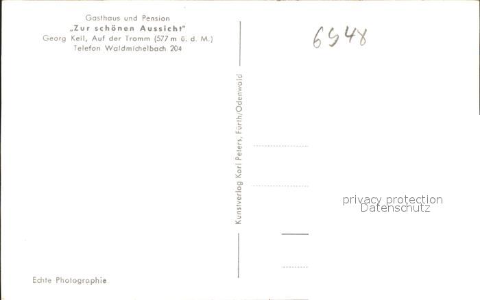 41586479 Waldmichelbach Gasthaus Pension Zur schoenen Aussicht Tromm Gedicht postalisch nicht gelaufen Alte Ansichtskarte Postkarte hz_F Katcode 11110006431021