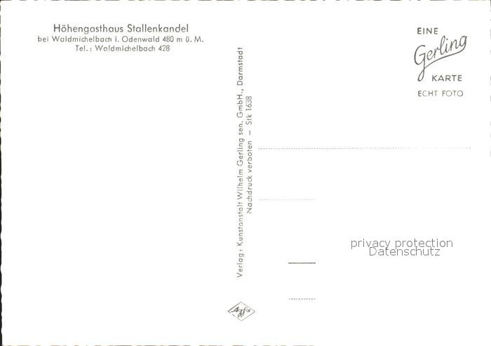 72010867 Waldmichelbach Gasthaus Stallenkandel postalisch nicht gelaufen Erhaltung siehe scans KatCode: 11110006431021