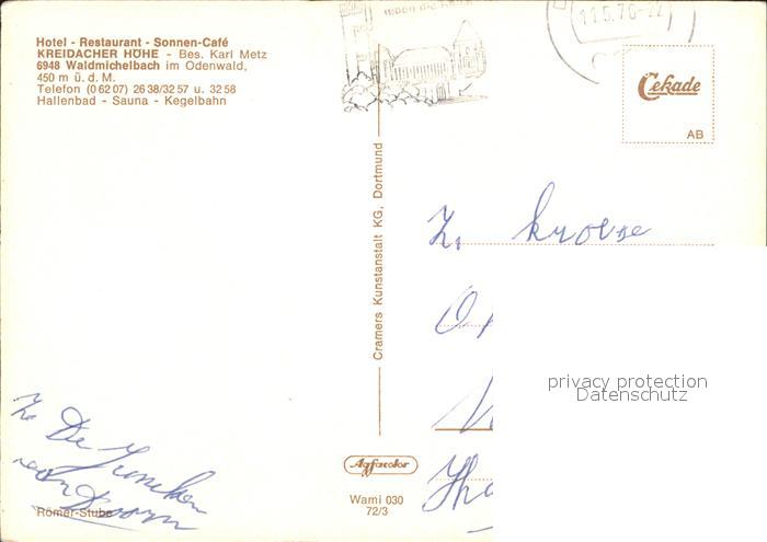72607661 alte Postkarte Waldmichelbach Hotel Restaurant Sonnen-Cafe postalisch gelaufen Erhaltung siehe scans [LiesaD40] KatCode: 11110006431021
