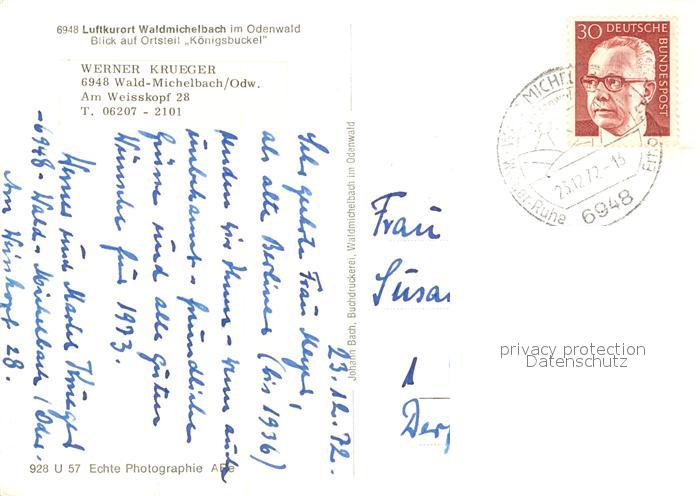 73125991 alte Postkarte Waldmichelbach Panorama Blick auf Ortsteil Koenigsbuckel postalisch gelaufen Erhaltung siehe scans [FriedD77] KatCode: 11110006431021