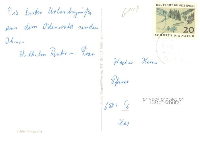 73756375 alte Postkarte Waldmichelbach Panorama Hoehenluftkurort im Odenwald Aussichtsturm Hirsch Sporthalle Sportplatz postalisch gelaufen Erhaltung siehe scans [FriedD77] KatCode: 11110006431021