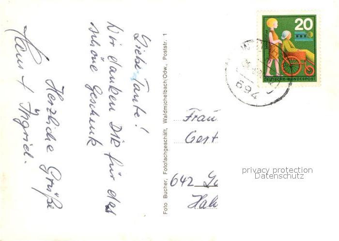 73033975 alte Postkarte Waldmichelbach Schwimmbad Brunnen postalisch gelaufen Erhaltung siehe scans [NatalD47] KatCode: 11110006431021
