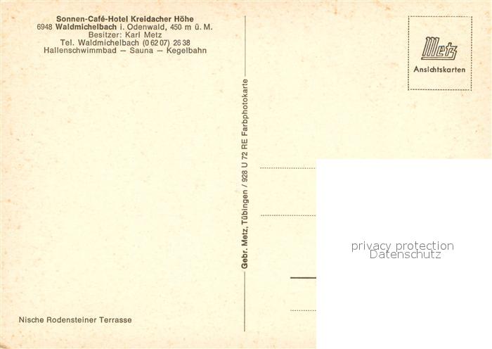 73642037 Waldmichelbach Sonnen Cafe Hotel Kreidacher Hoehe postalisch nicht gelaufen Erhaltung siehe scans [WerneD78] KatCode: 11110006431021