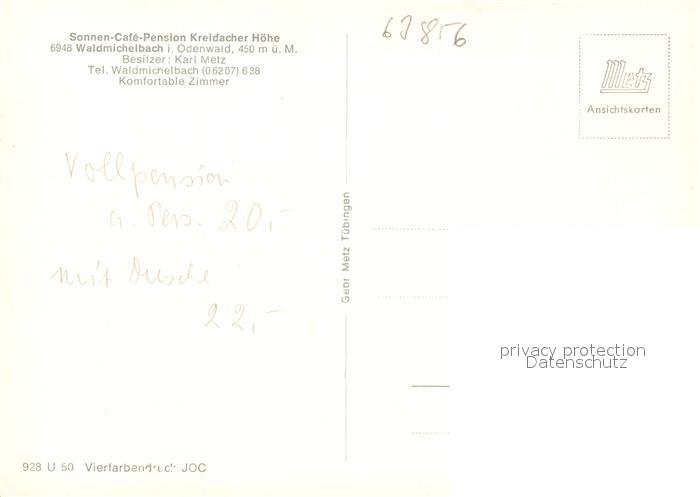 73570270 Waldmichelbach Sonnen-Cafe Kreidacher H?he postalisch nicht gelaufen Erhaltung siehe scans [PaolaD17] KatCode: 11110006431021