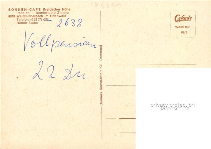 73052102 Waldmichelbach Sonnen-Cafe Kreidacher Hoehe postalisch nicht gelaufen Erhaltung siehe scans [NatalD47] KatCode: 11110006431021