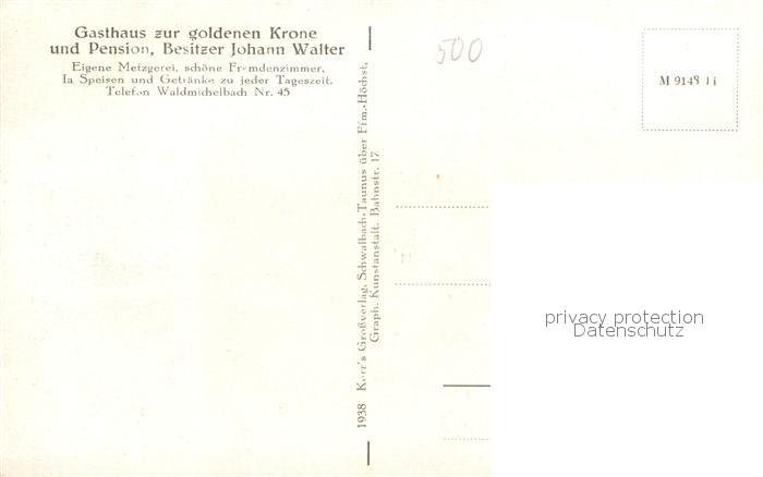 73782424 Waldmichelbach Unter-Schoenmattenweg u. Gasthaus zur goldenen Krone postalisch nicht gelaufen Erhaltung siehe scans [LiesaD40] KatCode: 11110006431021