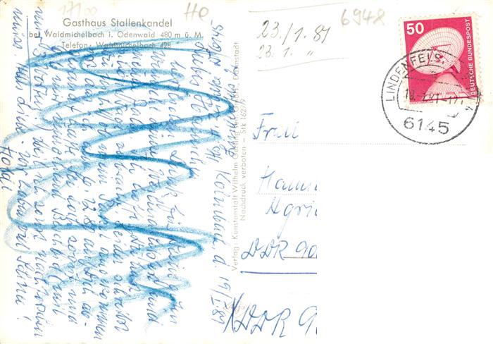73916863 Waldmichelbach Wald-Michelbach Gasthaus Stallenkandel postalisch gelaufen Erhaltung siehe scans [WerneD78] alte Postkarte Wern Katcode 11110006431021
