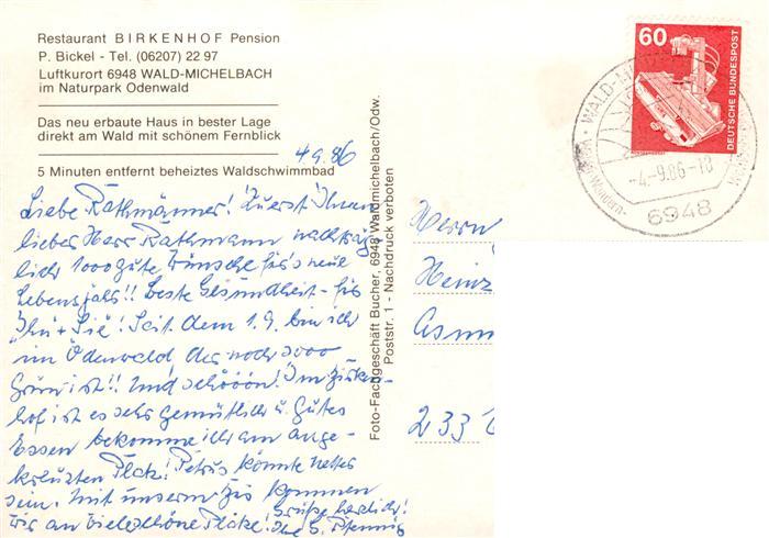 73878278 Waldmichelbach Wald-Michelbach Hotel Birkenhof Gastraeume postalisch gelaufen Erhaltung siehe scans [WerneD78] alte Postkarte Wern Katcode 11110006431021