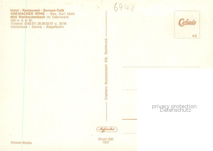 73870137 Waldmichelbach Wald-Michelbach Hotel Restaurant Sonnen Cafe Kreidacher Hoehe postalisch nicht gelaufen Erhaltung siehe scans [WerneD78] Wern Katcode 11110006431021