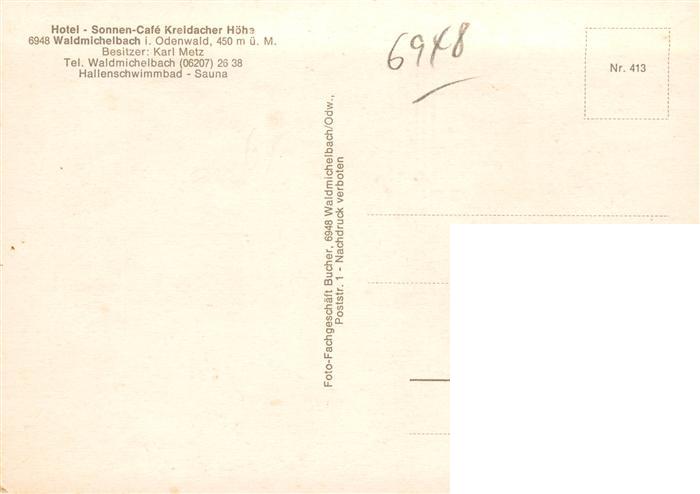 73895426 Waldmichelbach Wald-Michelbach Hotel Sonnen-Cafe Kreidacher Hoehe Panorama postalisch nicht gelaufen Erhaltung siehe scans [FriedD77] Frie Katcode 11110006431021