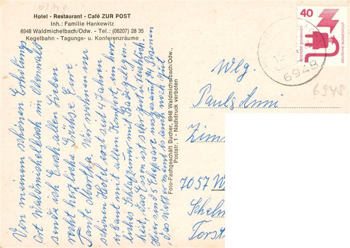 73911709 Waldmichelbach Wald-Michelbach Hotel zur Post Gastraeume Kegelbahn postalisch gelaufen Erhaltung siehe scans [WerneD78] alte Postkarte Wern Katcode 11110006431021
