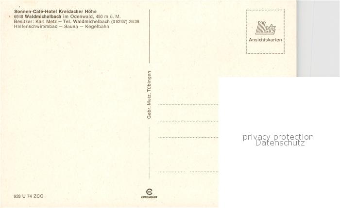 73871046 Waldmichelbach Wald-Michelbach Sonnen Cafe Hotel Kreidacher Hoehe postalisch nicht gelaufen Erhaltung siehe scans [WerneD78] Wern Katcode 11110006431021