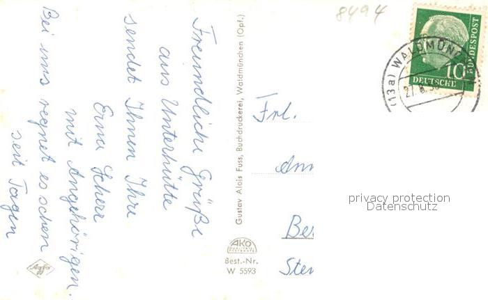 43342911 Waldmuenchen Cham Bayern Heim Herzogau Marktplatz Bezirksamt Trenk der Pandur Panorama Joh v Nepomuk Denkmal postalisch gelaufen Erhaltung siehe scans [WerneD78] alte Postkarte Wern Katcode 11110009372171