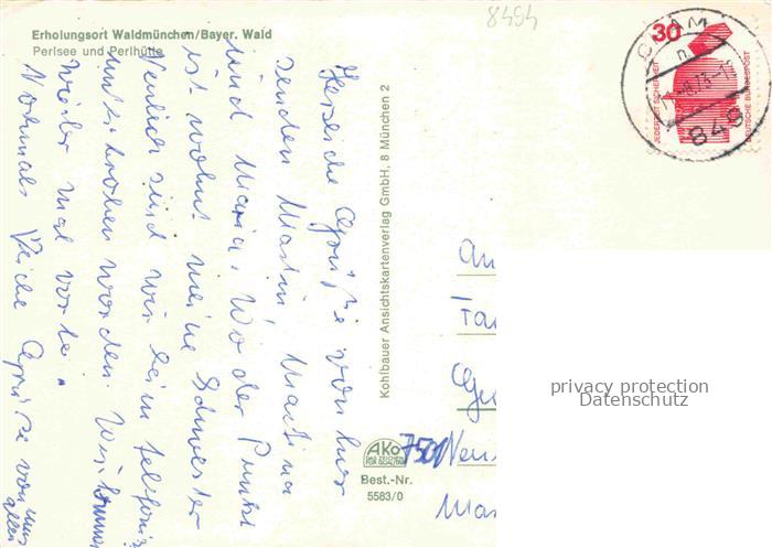 74049226 Waldmuenchen Cham Bayern Panorama Badestrand am Perlsee Bayerischer Wald postalisch gelaufen Erhaltung siehe scans [FriedD77] alte Postkarte Frie Katcode 11110009372171
