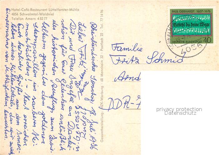 72959790 alte Postkarte Waldniel Hotel Cafe Luettelforster Muehle postalisch gelaufen Erhaltung siehe scans [WerneD78] KatCode: 11110005166024