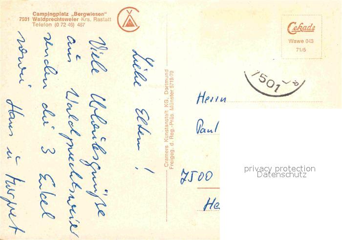 72759914 alte Postkarte Waldprechtsweier Campingplatz Bergwiese Fliegeraufnahme postalisch gelaufen Erhaltung siehe scans [WerneD78] KatCode: 11110008215046